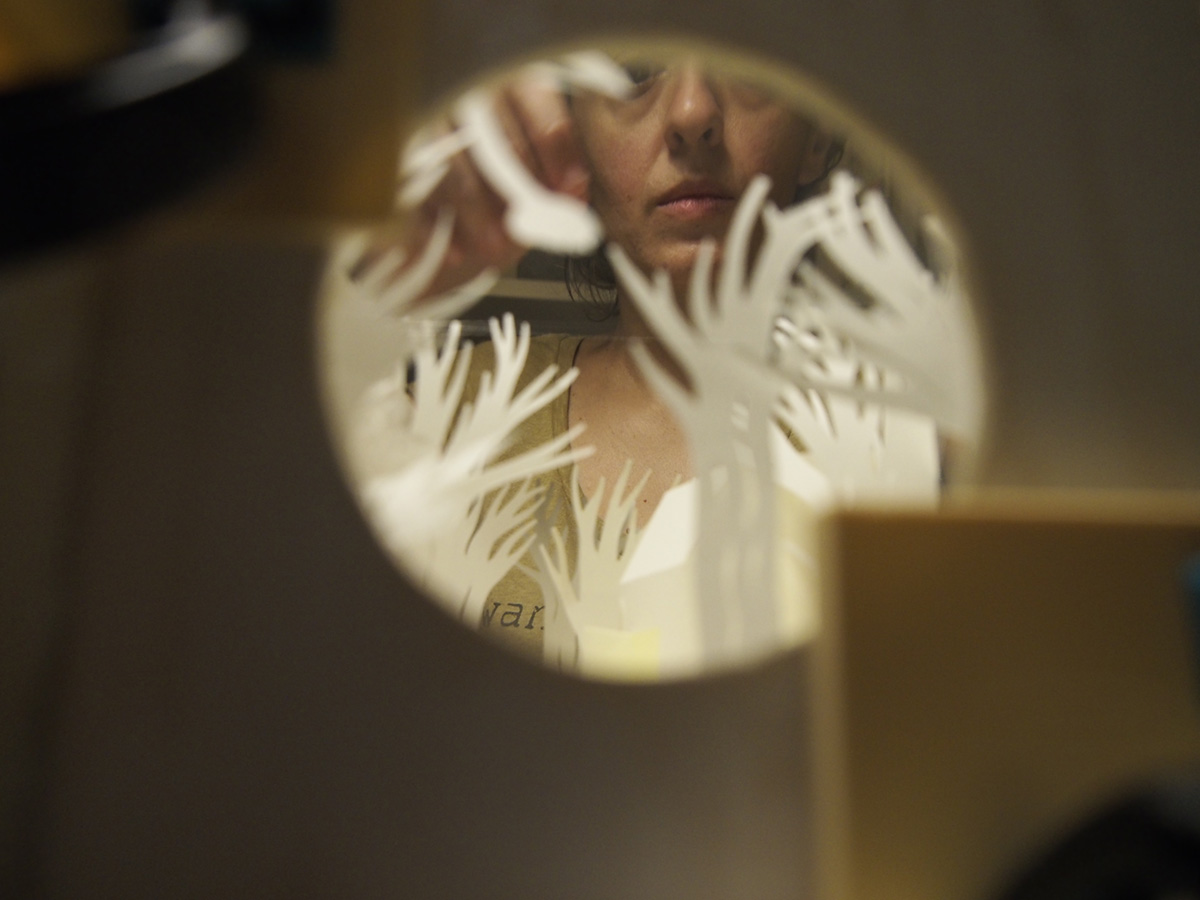 Dioramas realizados para la exposición en la librería La Fabulosa con motivo de la presentación del libro Dentro del Bosque, Pípala 2017.