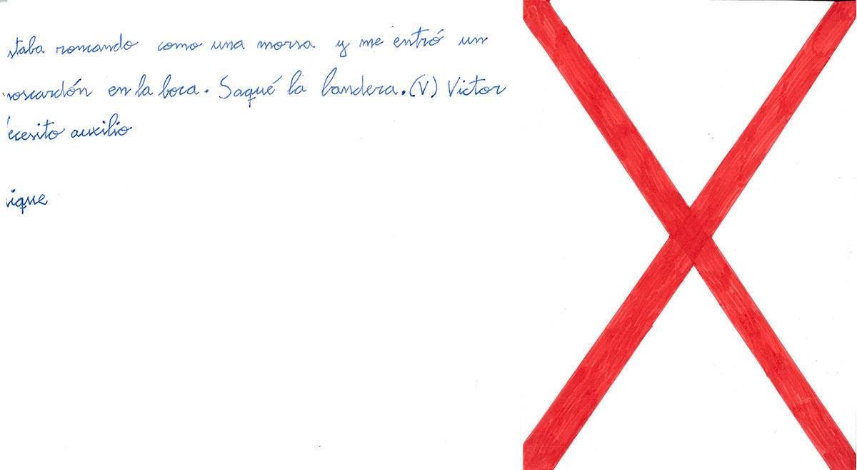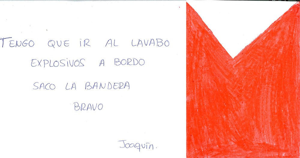 «Tengo que ir al lavabo, explosivos a bordo. Saco la bandera BRAVO» Joaquín.