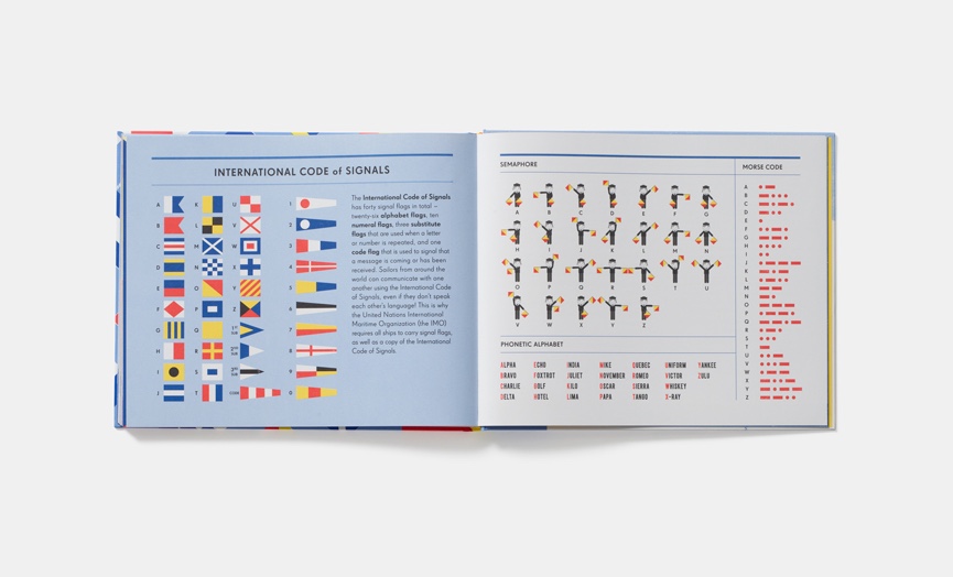 A rayas rojas y amarillas, una cruz sobre fondo azul, un círculo negro sobre un vistoso amarillo… existen 40 banderas cuyo código internacional ha servido durante años a los marineros para comunicarse entre barcos o entre mar y tierra ¿Las conoces? Seguro que no. Por eso Inés Puig, con ayuda del fantástico libro de Sara Gillingham Alpha Bravo Charlie (Phaidon, 2016), decidió llevar a varios coles un ejercicio: transformar el antiguo código naval de banderas en un código secreto para hablar con amigos. Este código es tan desconocido que puede servirte sin problema para mandar mensajes secretos sin que ningún adulto se entere de tus intenciones.