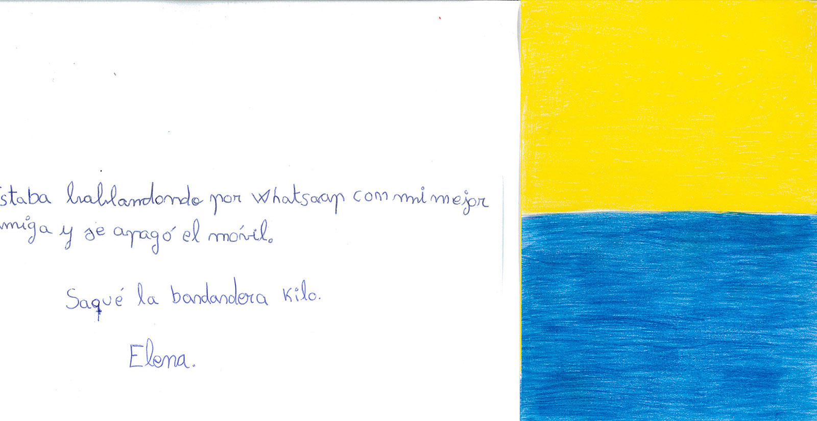 «Estaba hablando por whatsaap con mi mejor amiga y se apagó el móvil. Saco la bandera KILO» Elena.