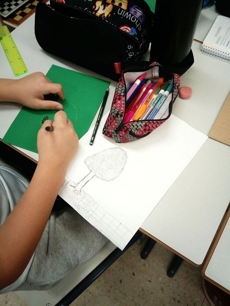 Juliana Salcedo y yo, Alejandra Fernández, fuimos invitadas a impartir unos talleres escolares en el marco del festival que se inspirasen en estos temas. Trabajamos en trece aulas distintas, de quinto y sexto de primaria, con una misión: diseñar nuestro pueblo. Les propusimos a los participantes que pensaran qué cosas debía tener su pueblo para que estuviera lleno de vida, para que la gente quisiera venir a vivir en él (no solo de vacaciones).