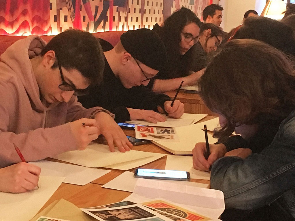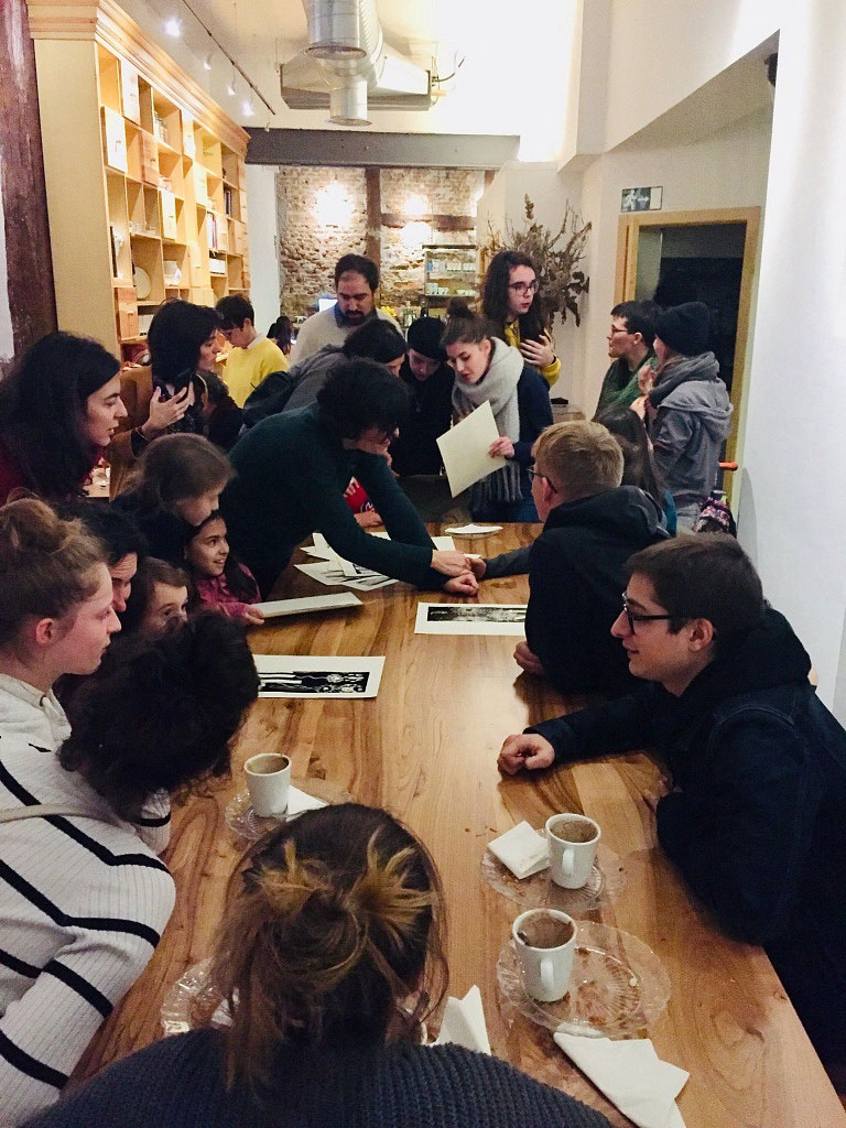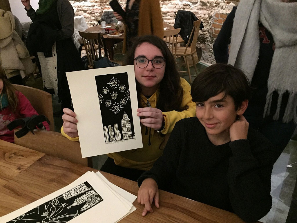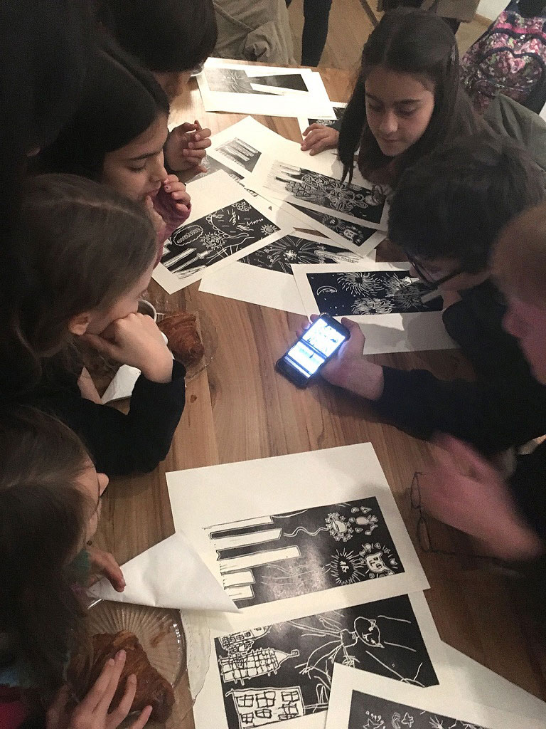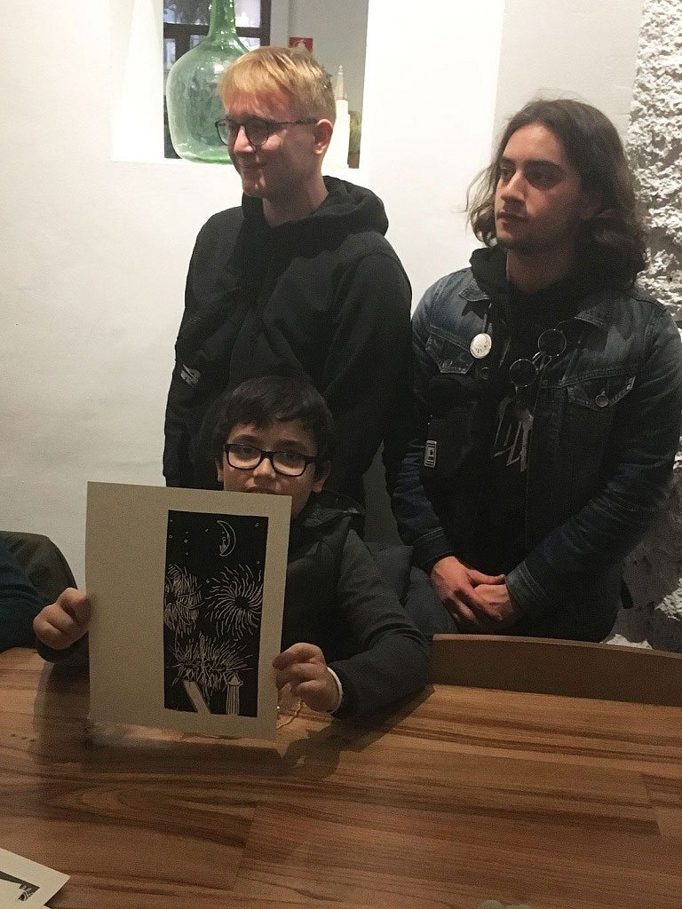 Pero, lo más importante es que organizamos un encuentro entre nuestros niños ilustradores y los grabadores belgas.
