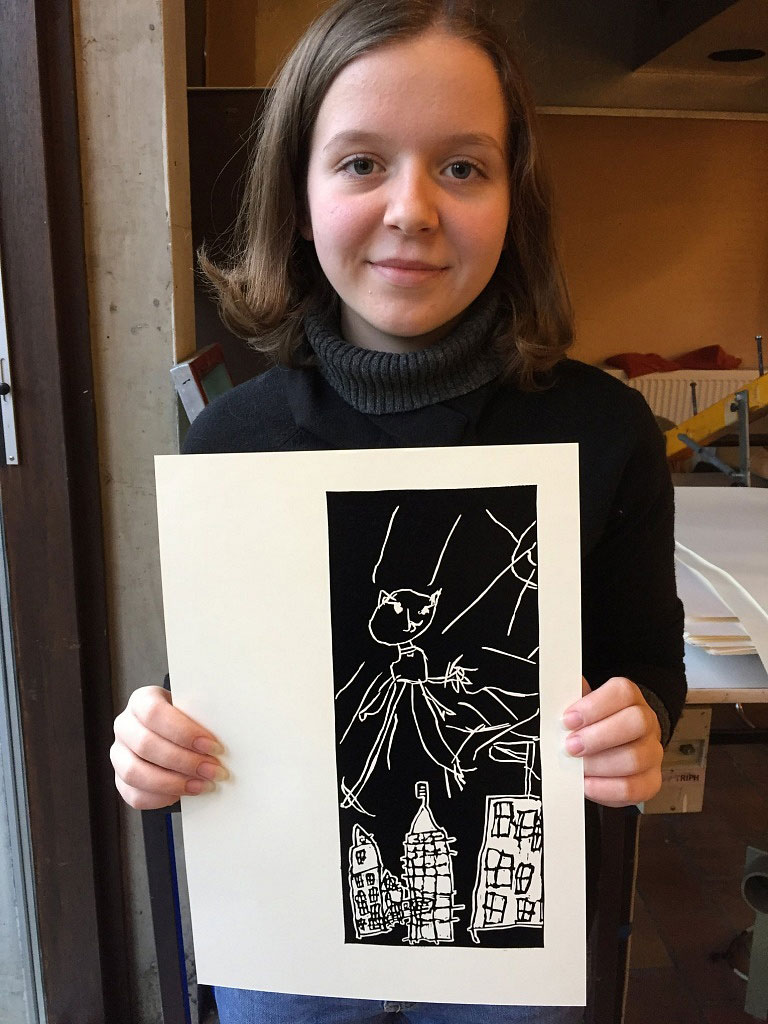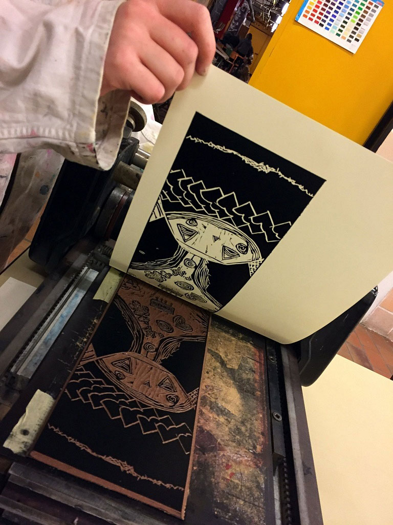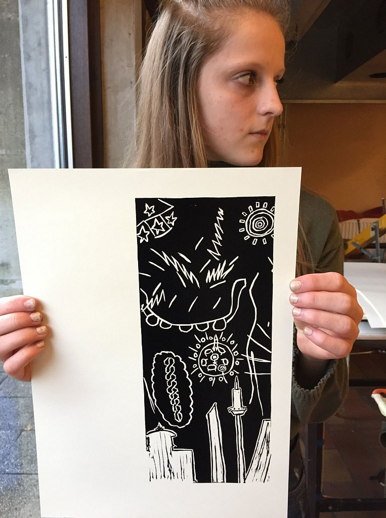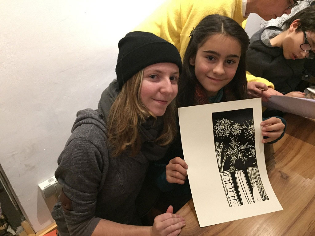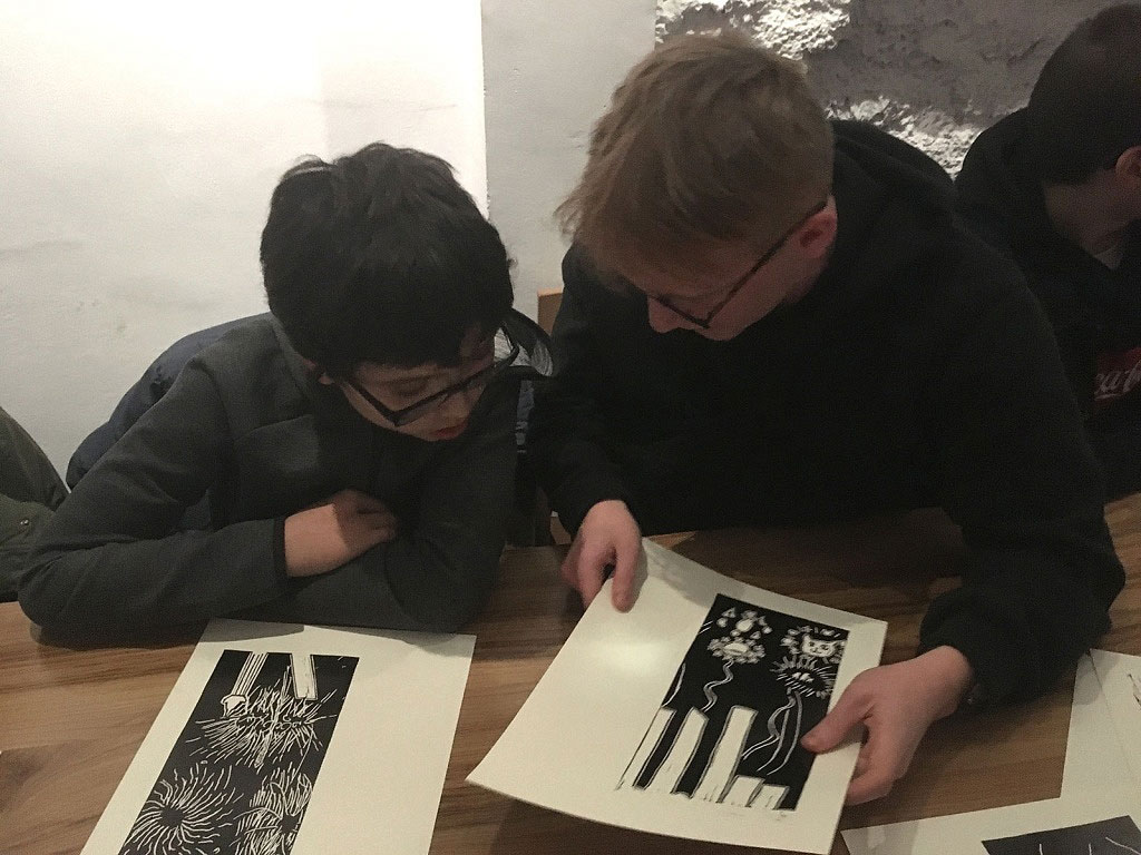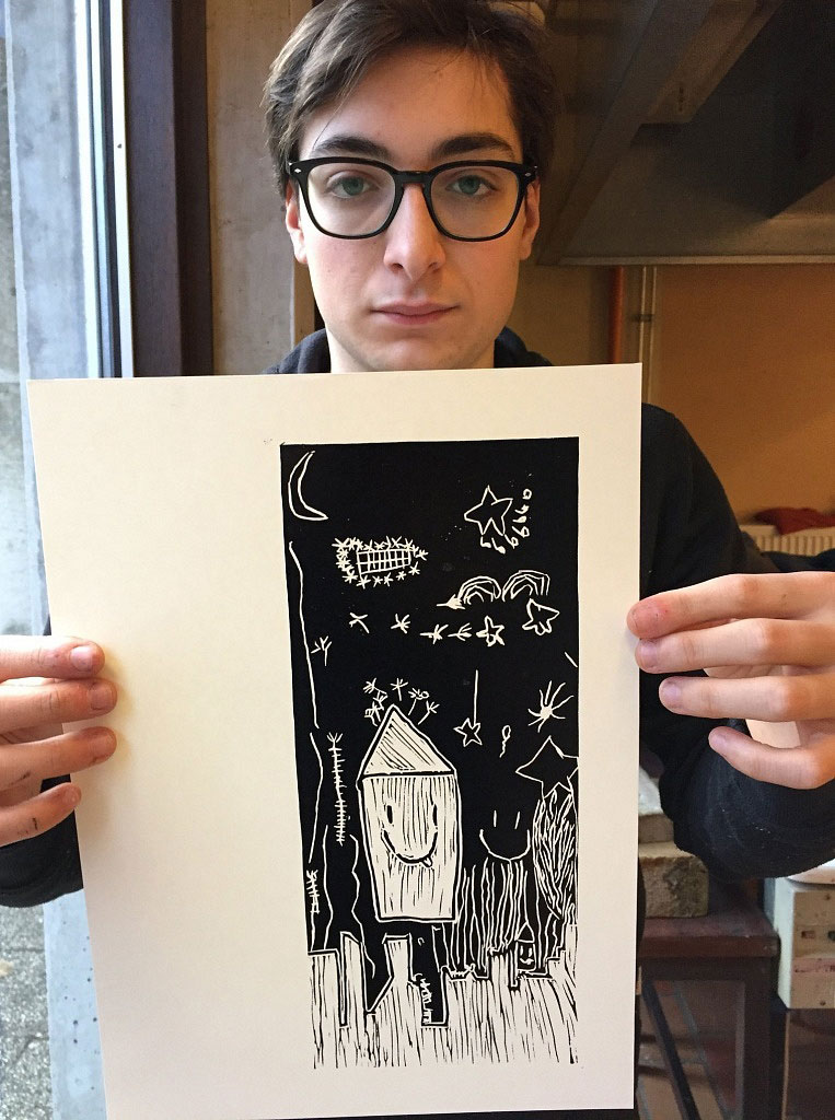 A su vuelta a La Louvière, los alumnos de Alain hicieron linograbados a partir de las ilustraciones de los niños españoles.