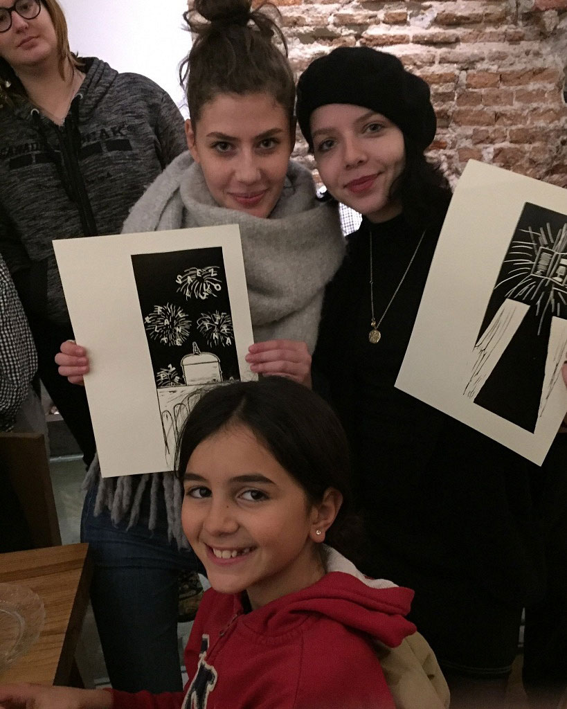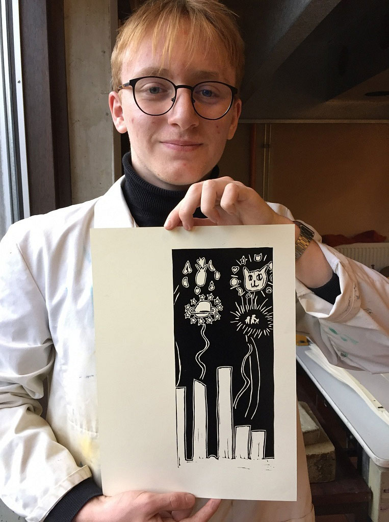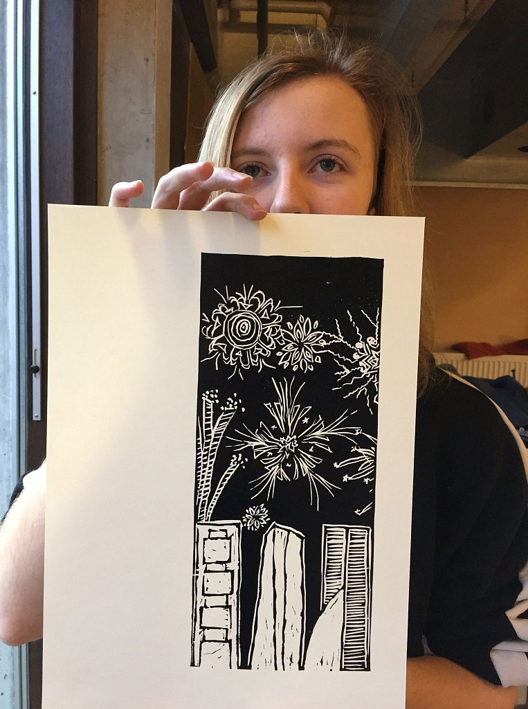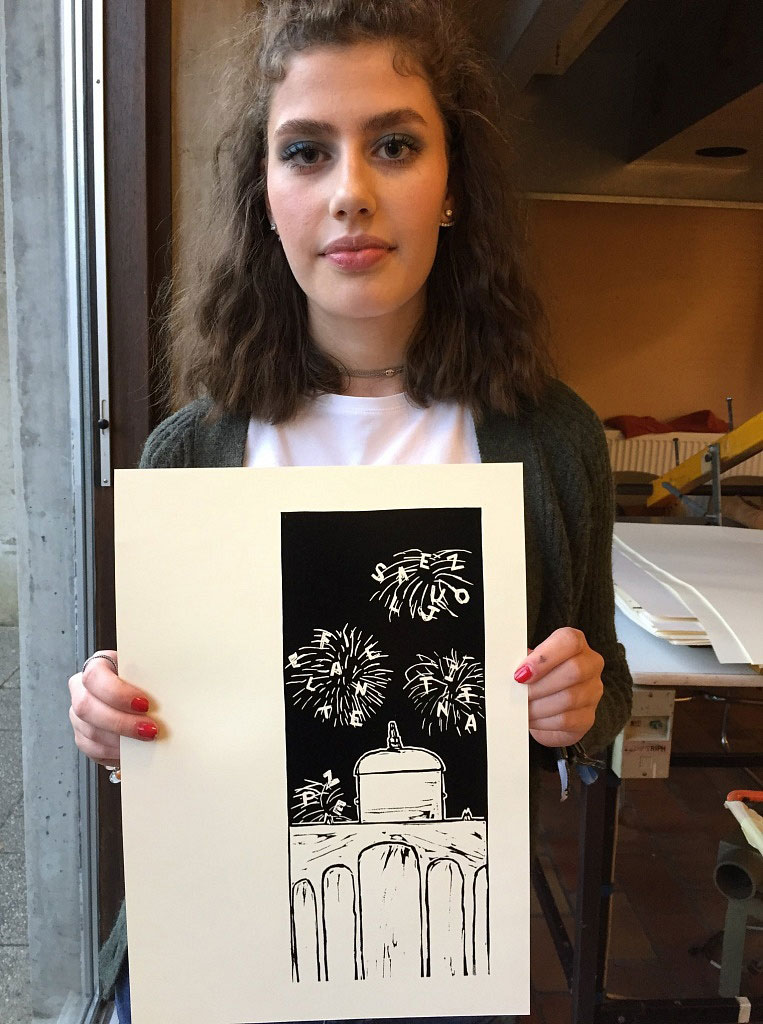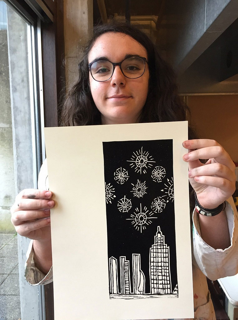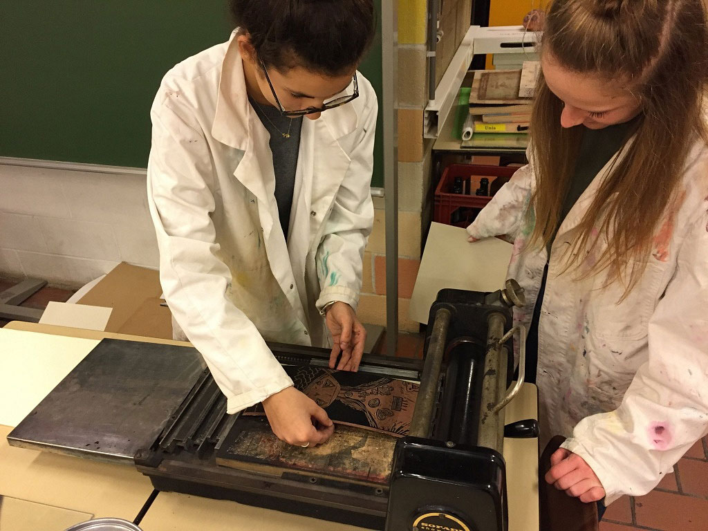 A su vuelta a La Louvière, los alumnos de Alain hicieron linograbados a partir de las ilustraciones de los niños españoles.