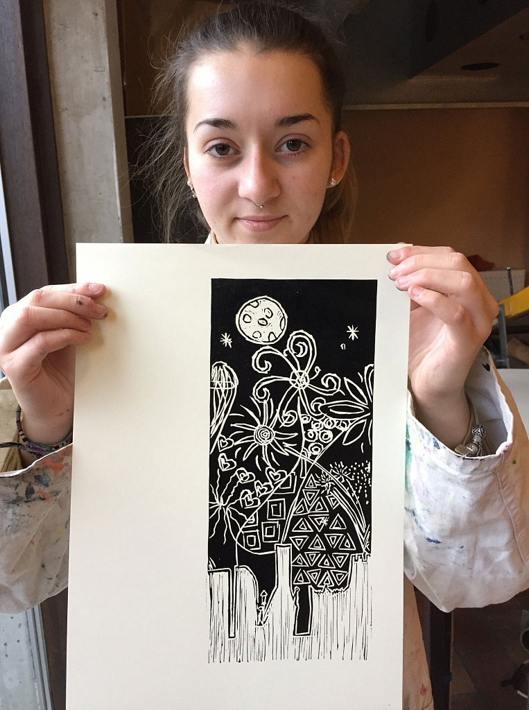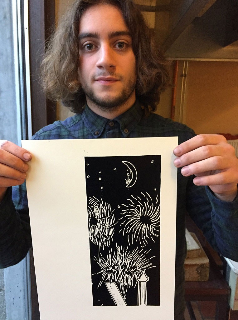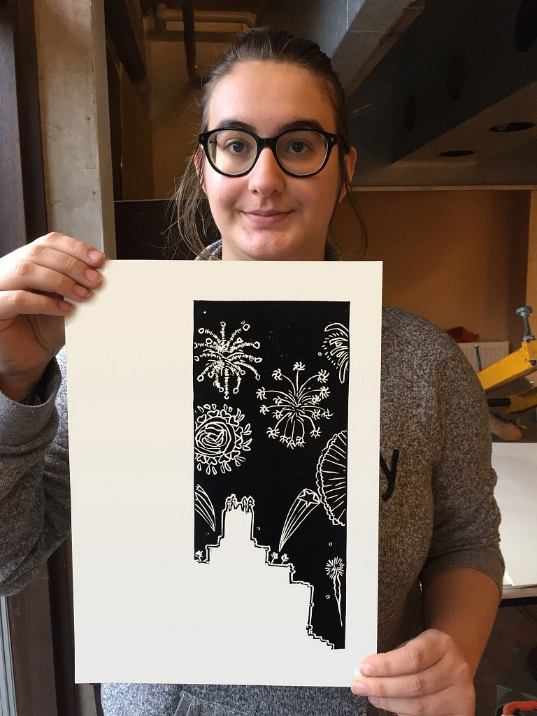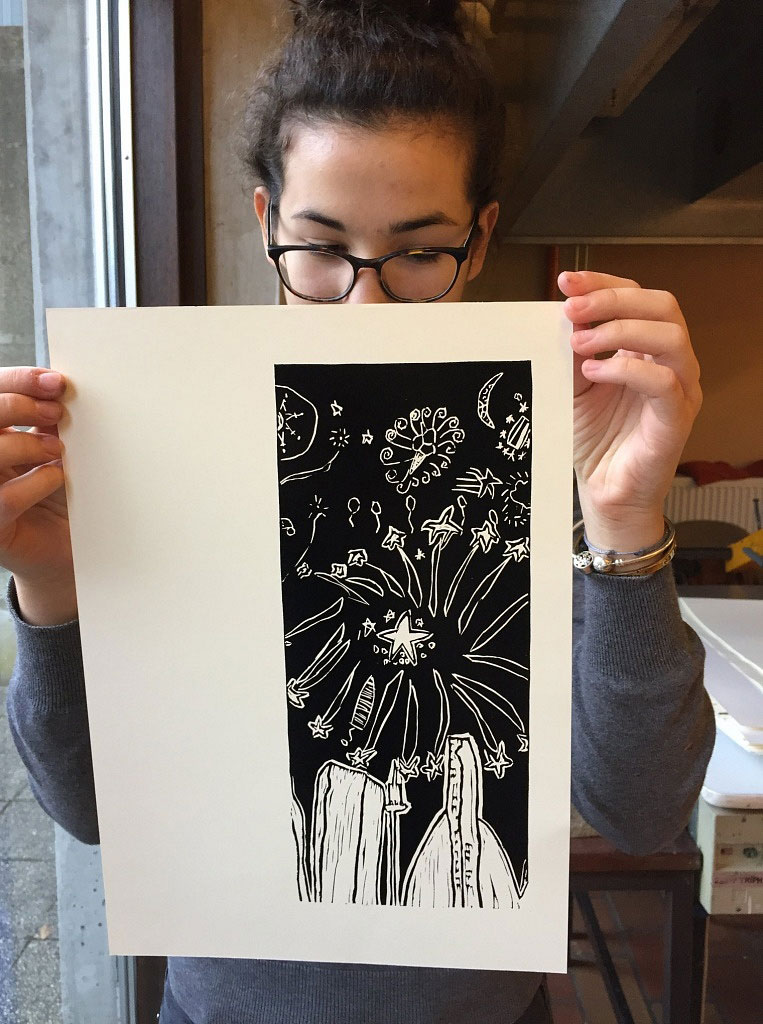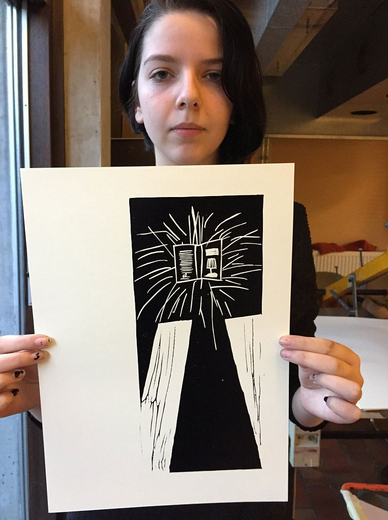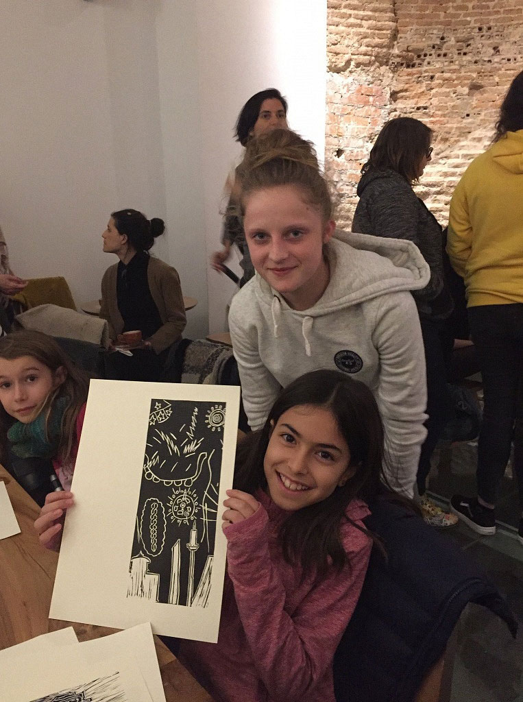 A su vuelta a La Louvière, los alumnos de Alain hicieron linograbados a partir de las ilustraciones de los niños españoles.
