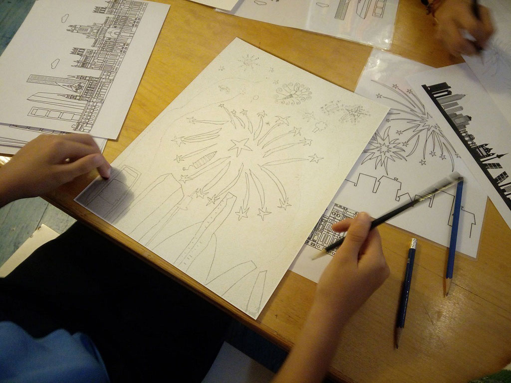 Su propuesta: que los chavales ilustraran fuegos artificiales sobre Madrid.